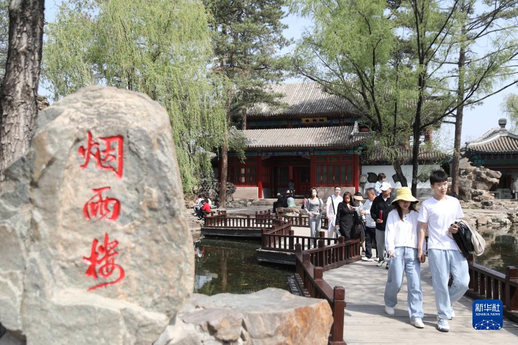 5月3日,游客在河北承德避暑山莊游玩。