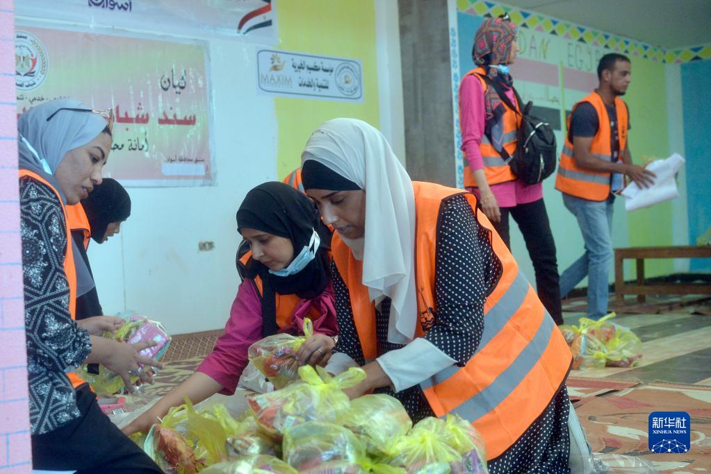 5月2日,在埃及南部阿斯旺省,工作人員為逃離蘇丹進入埃及的難民準備救濟包裹。