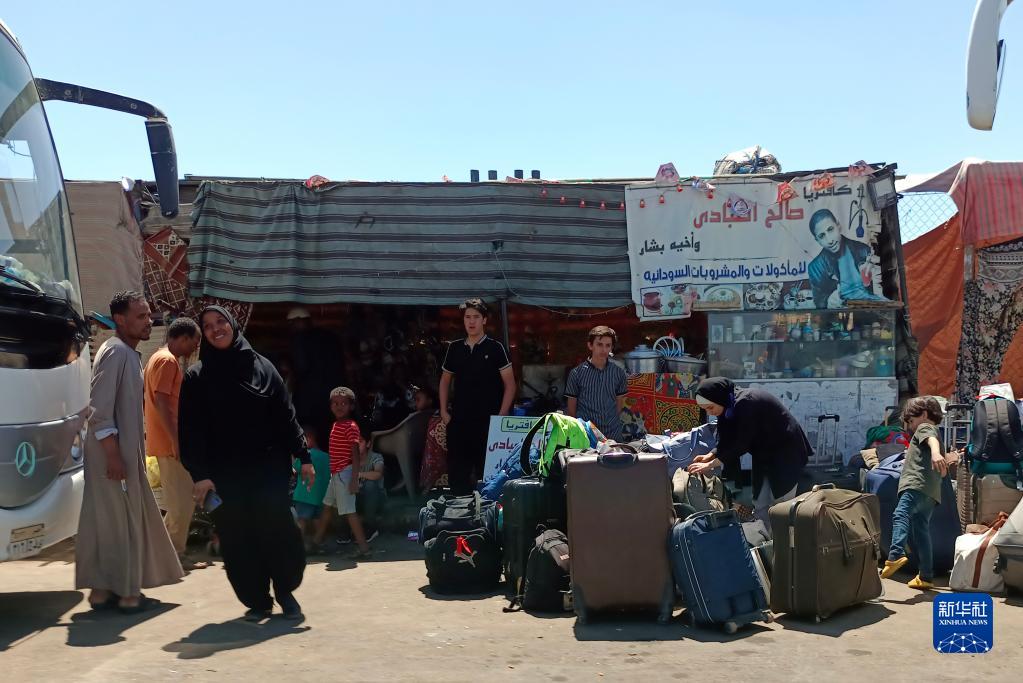 5月2日,逃離蘇丹的難民抵達埃及南部阿斯旺省的一處汽車站(手機拍攝)。