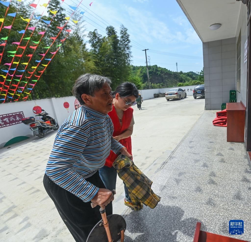 5月4日,老人來到東白湖鎮(zhèn)湖山村愛心食堂就餐。