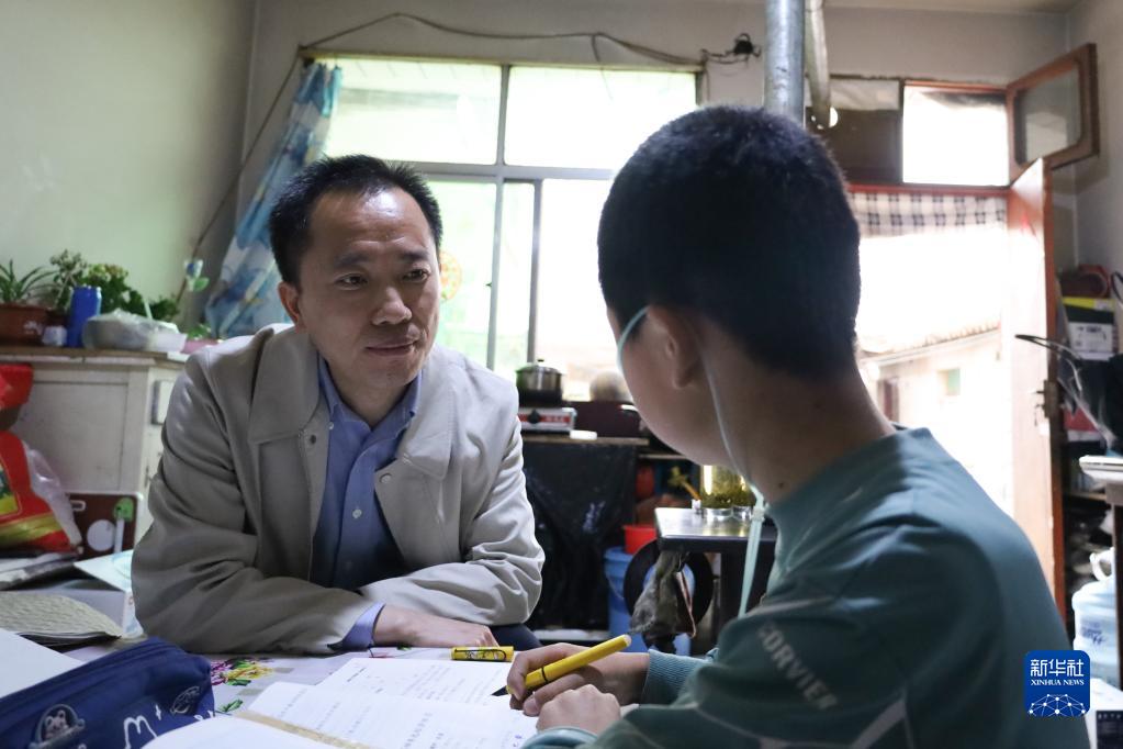 4月12日,曹云山(左)在肺動脈高壓疾病患者家里走訪。