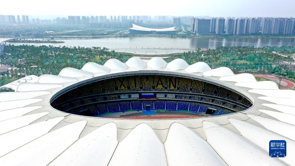 位于西安國際港務區的西安奧體中心(4月26日攝,無人機照片)。