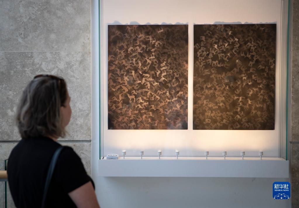 5月16日,在以色列拉馬特甘巴爾伊蘭大學的費特納米科學與藝術博物館,參觀者觀看一件繪畫作品。