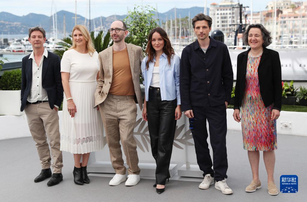 5月17日,在法國戛納舉行的第76屆戛納國際電影節(jié)上,“金攝像機(jī)”單元評委會主席、法國演員阿奈絲·德穆斯捷(右三)攜眾評委亮相拍照式。