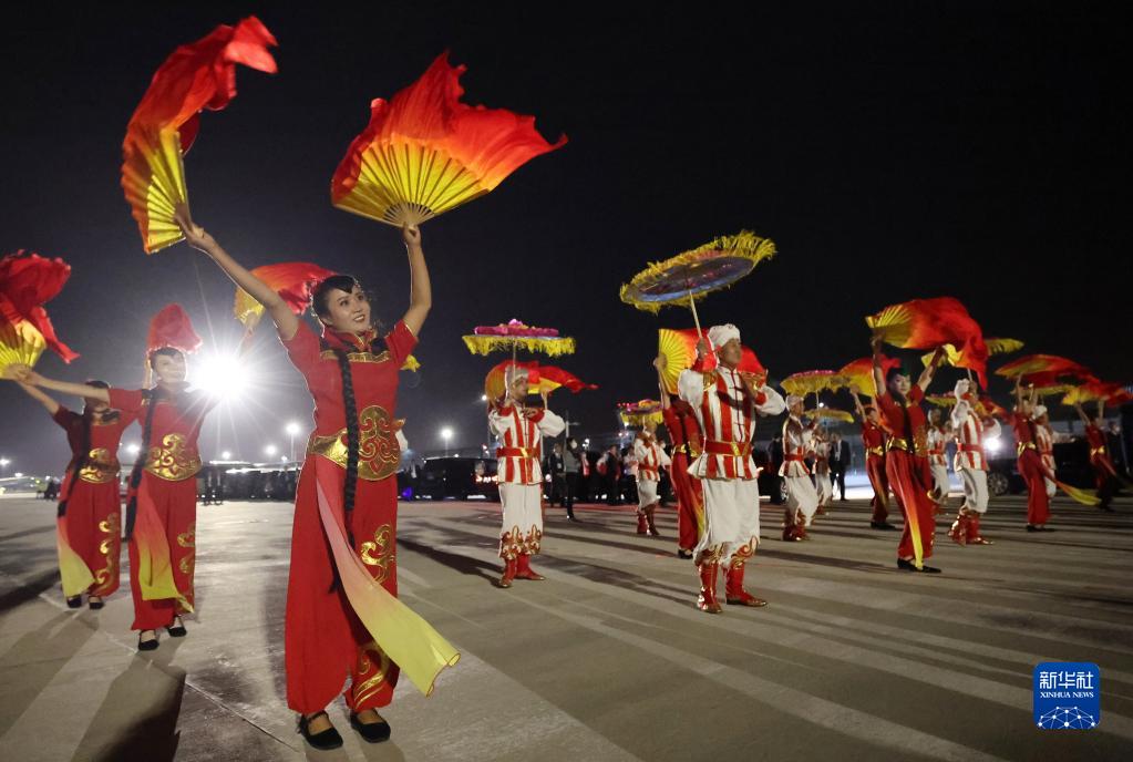 5月18日凌晨,出席中國-中亞峰會(huì)的烏茲別克斯坦總統(tǒng)米爾濟(jì)約耶夫抵達(dá)陜西省西安市。這是歡迎儀式現(xiàn)場。