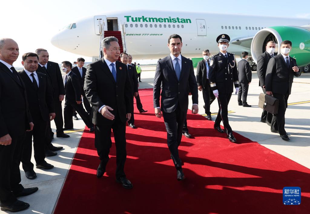 5月18日上午,出席中國-中亞峰會的土庫曼斯坦總統別爾德穆哈梅多夫抵達陜西省西安市。