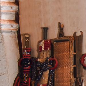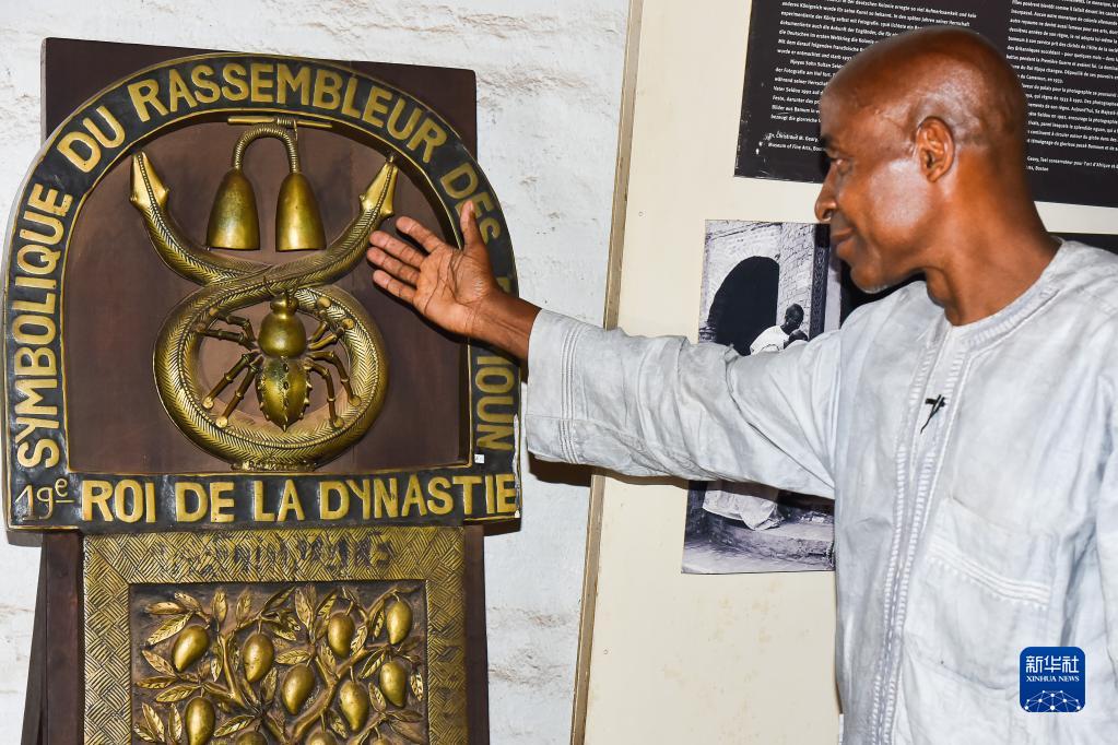 4月12日,在喀麥隆西部大區豐班,巴蒙王宮博物館向導介紹巴蒙王國的象征。