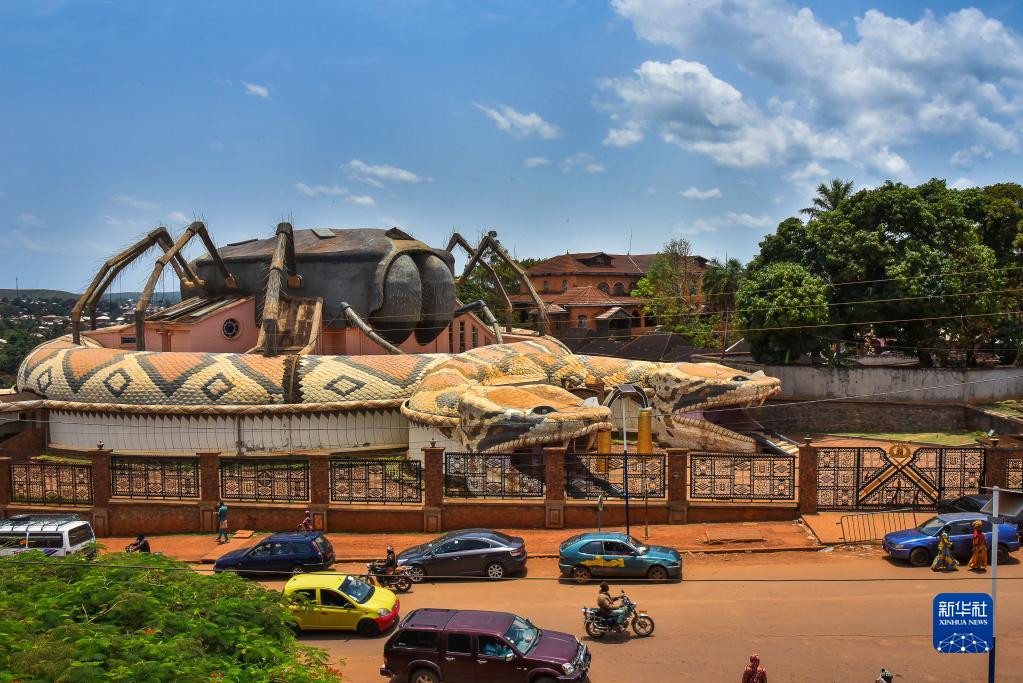 這是4月12日在喀麥隆西部大區豐班拍攝的根據巴蒙象征“雙頭蛇、蜘蛛和雙鑼”修建的新博物館——巴蒙國王博物館。