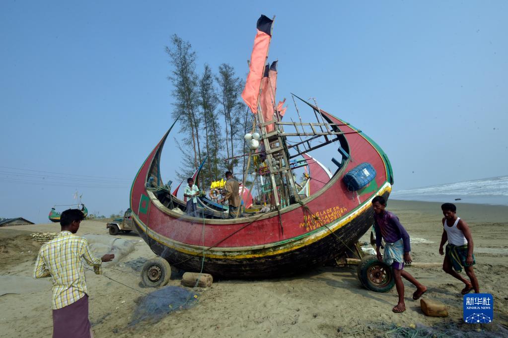 5月15日,在孟加拉國(guó)南部科克斯巴扎爾,熱帶氣旋“穆查”經(jīng)過(guò)之后,漁民回到海灘上整理漁船為出海捕魚(yú)做準(zhǔn)備。