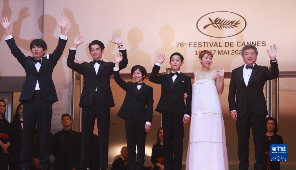 5月17日,在法國戛納舉行的第76屆戛納國際電影節(jié)上,日本導(dǎo)演是枝裕和(右一)攜主創(chuàng)人員亮相日本影片《怪物》首映禮紅毯。