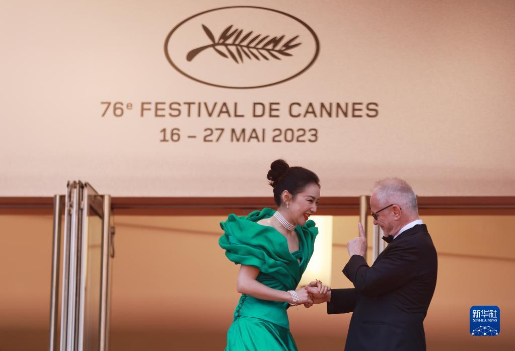 5月17日,在法國(guó)戛納舉行的第76屆戛納國(guó)際電影節(jié)上,中國(guó)演員高葉在日本影片《怪物》首映禮上與戛納電影節(jié)藝術(shù)總監(jiān)蒂埃里·弗雷莫交談。