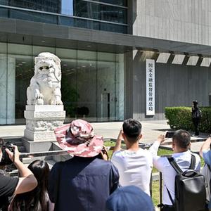 5月18日,媒體記者在國(guó)家金融監(jiān)督管理總局門前拍攝。