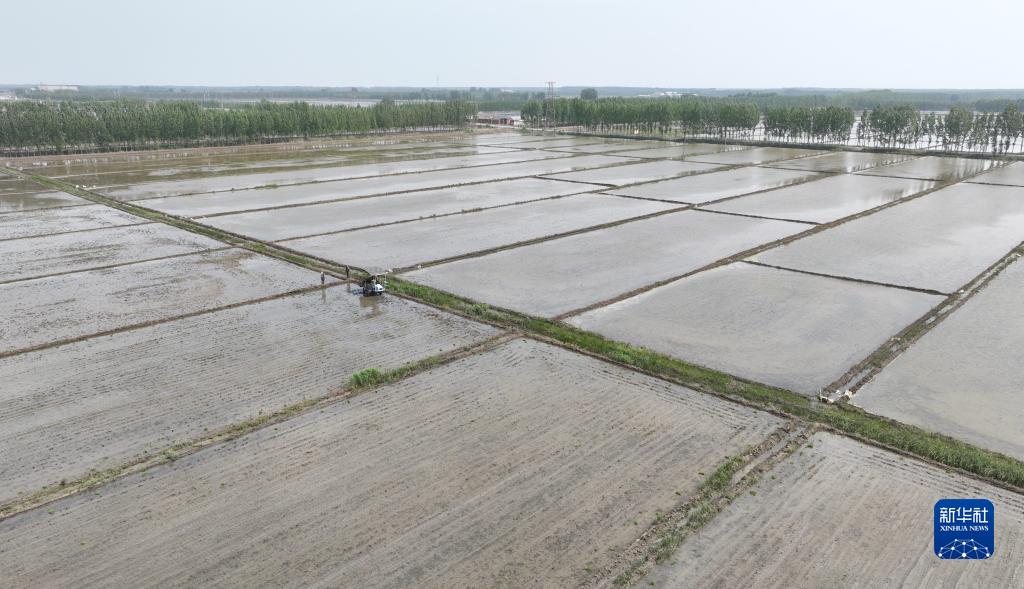 5月18日在河北唐山豐南區岔河鎮楊義口頭一村拍攝的水稻田(無人機照片)。