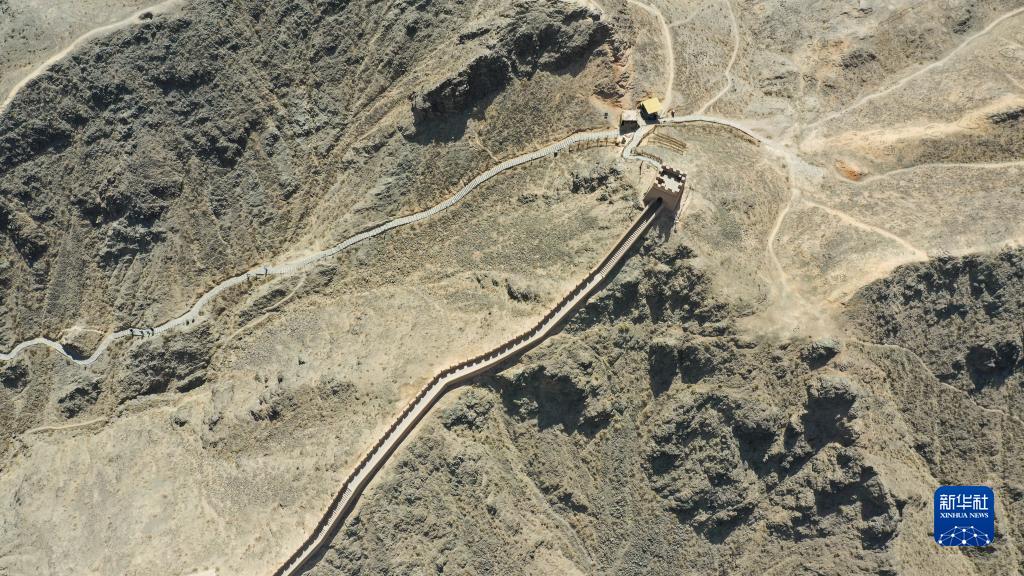 這是5月17日在甘肅省嘉峪關市拍攝的懸壁長城(無人機照片)。