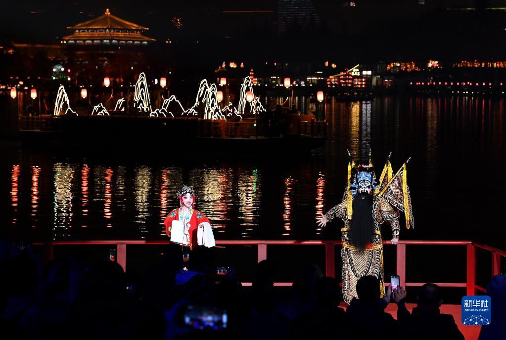 西安大唐芙蓉園內上演的秦腔表演(2月5日攝)。