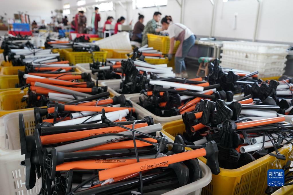5月18日,河北省平鄉(xiāng)縣一家打氣筒生產(chǎn)企業(yè)的工人在車間內(nèi)工作。