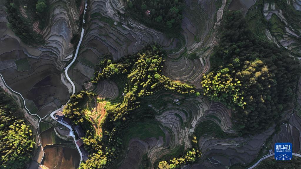 近日,湖南省婁底市新化縣紫鵲界梯田蓄水備耕,水影天光如詩如畫。