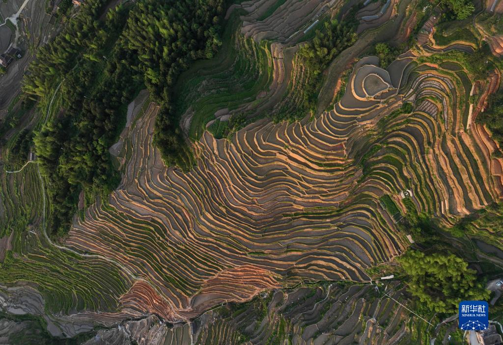 近日,湖南省婁底市新化縣紫鵲界梯田蓄水備耕,水影天光如詩如畫。