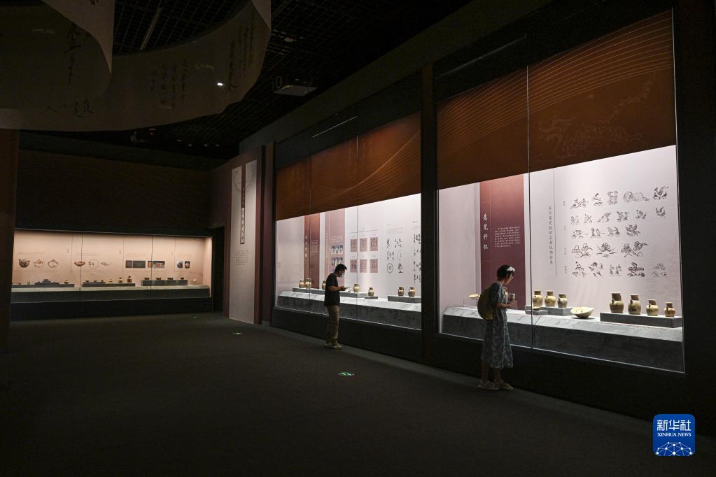 5月18日,觀眾在中國(海南)南海博物館觀看“詩畫彩瓷——唐代海上絲綢之路上的長沙窯瓷器展”。