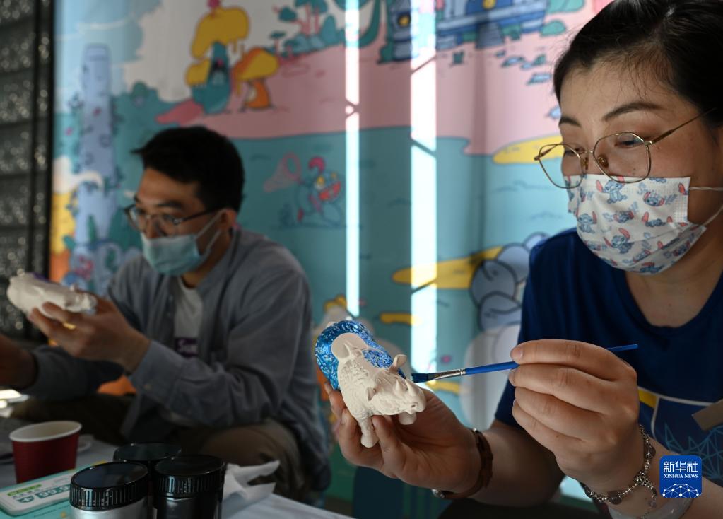 5月18日,市民在犀牛尊素胚上涂色。犀牛尊以國(guó)博館藏重器“錯(cuò)金銀云紋青銅犀尊”為原型。