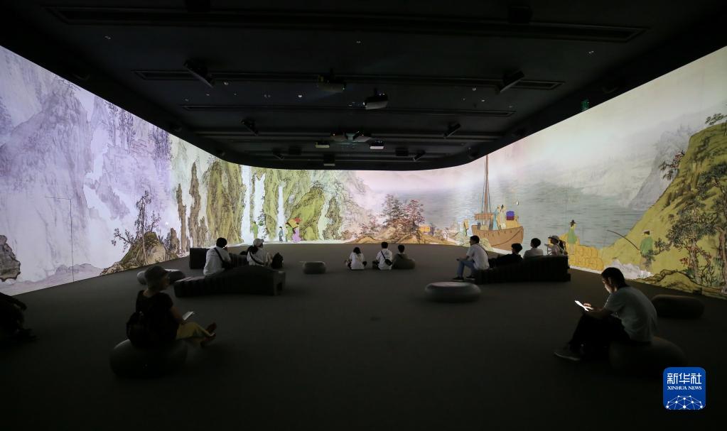 5月18日,游客在韓國(guó)首爾國(guó)立中央博物館觀看數(shù)字沉浸式影像。