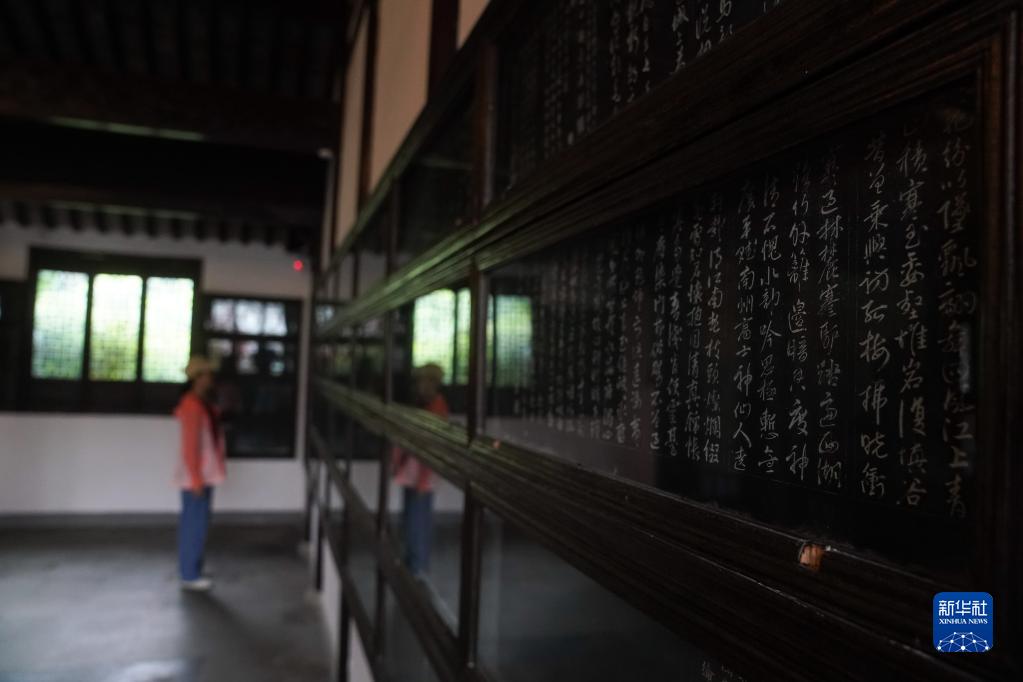 5月17日,游人在參觀晴山堂石刻。