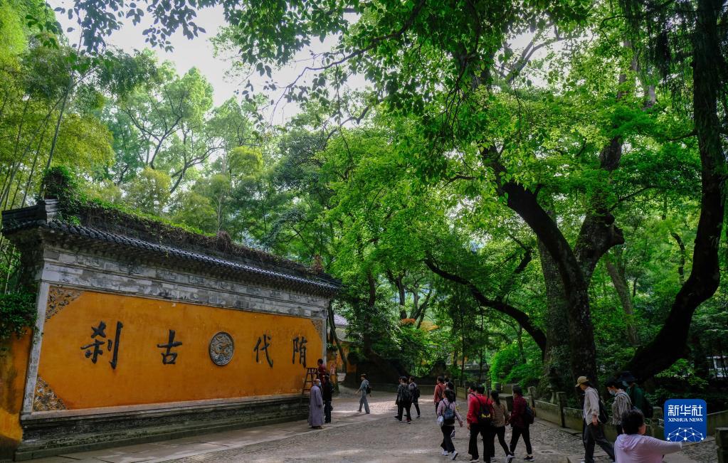 5月16日,游客在天臺縣國清寺參觀。