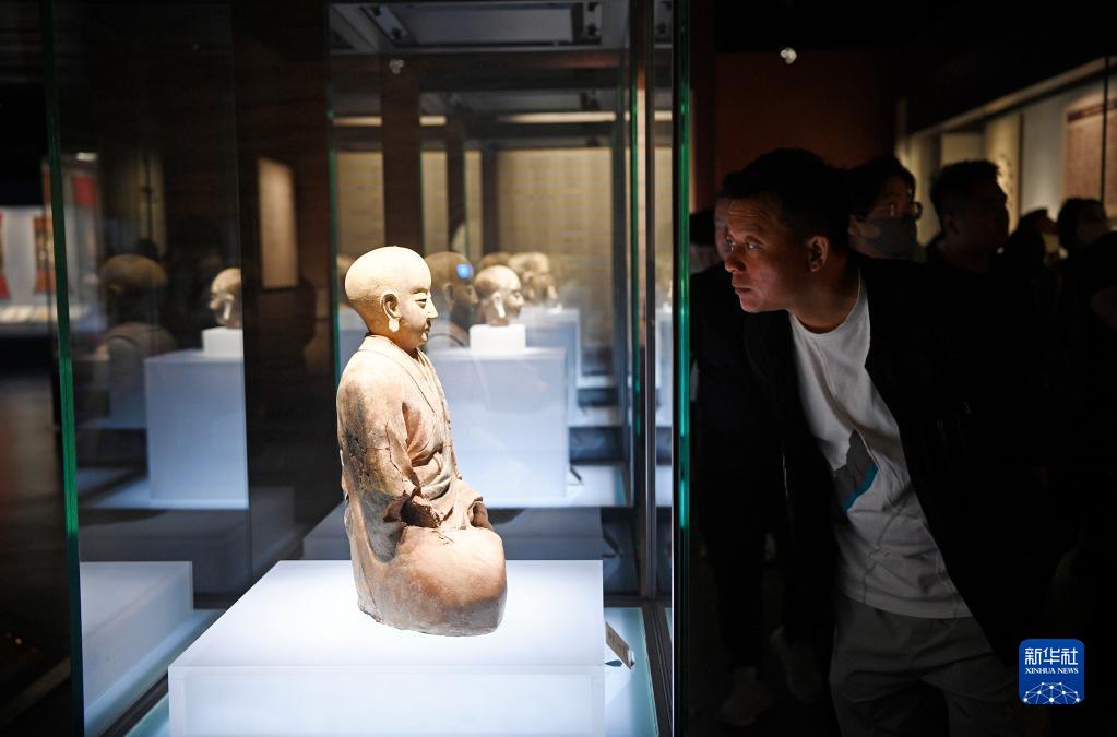 5月18日,游客在西夏博物館欣賞展出的西夏文物。