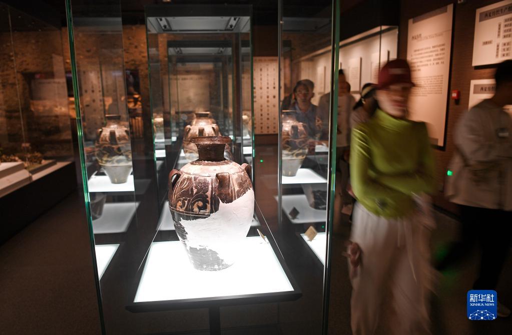 5月18日,游客在西夏博物館欣賞展出的西夏文物。