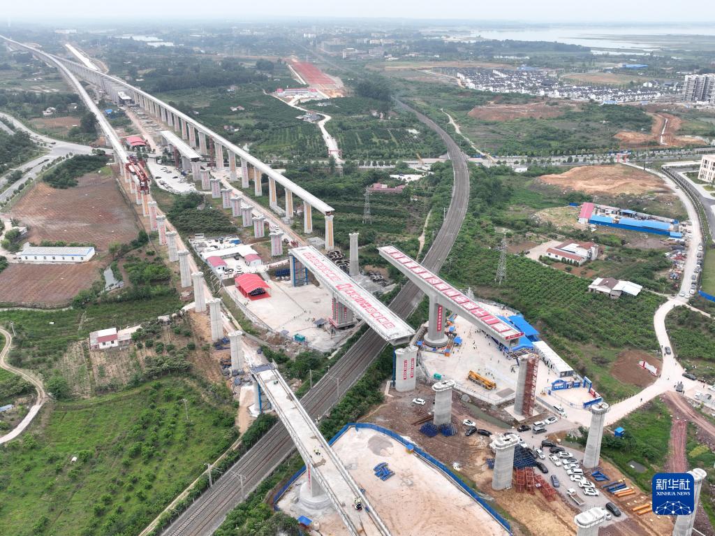 5月18日,荊荊高鐵荊門特大橋轉體梁與滬渝蓉高鐵太白集特大橋轉體梁,分別實現成功對接,跨越焦柳鐵路。