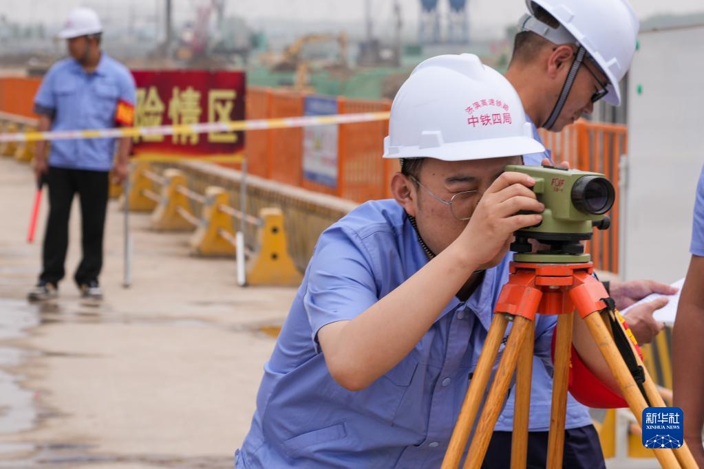 5月18日,參加演練的中鐵四局施工人員在現場測量數據。