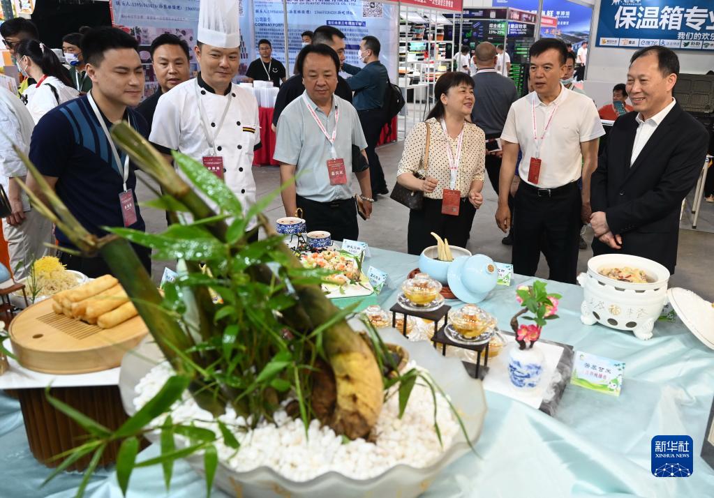 5月18日,參觀者在2023福建八閩文化主題宴席“建州筍宴”展位前參觀。