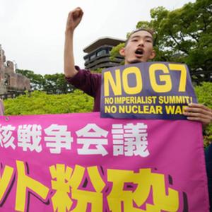 5月18日,民眾在日本廣島和平紀念公園集會反對七國集團峰會。