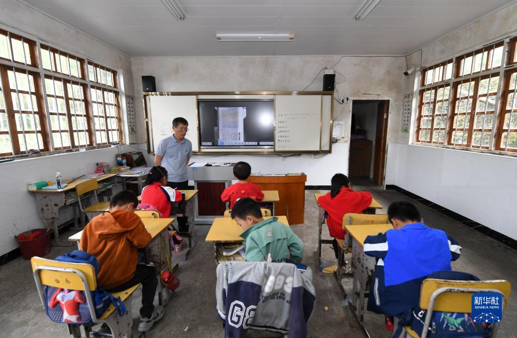 5月18日,在廣西靈川縣蘭田瑤族鄉深潭教學點,趙洪老師在給學生上課。