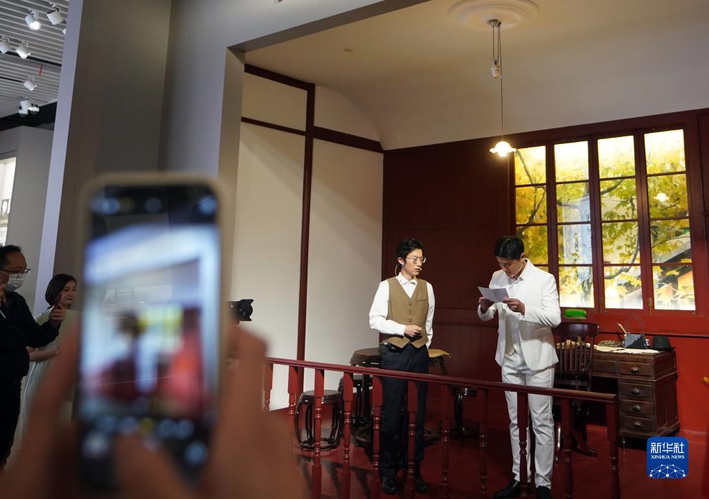5月18日晚,中共一大紀念館原創的情景黨課《又見新青年》在展廳內實景演出。