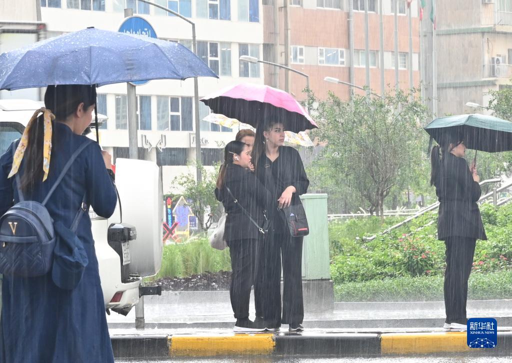 5月18日,人們在科威特首都科威特城冒雨出行。新華社發(阿薩德攝)