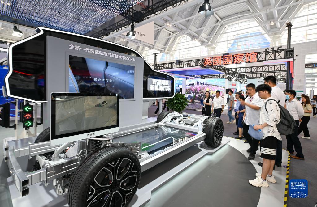 5月19日,觀眾在第七屆世界智能大會參觀智能電動汽車技術平臺。