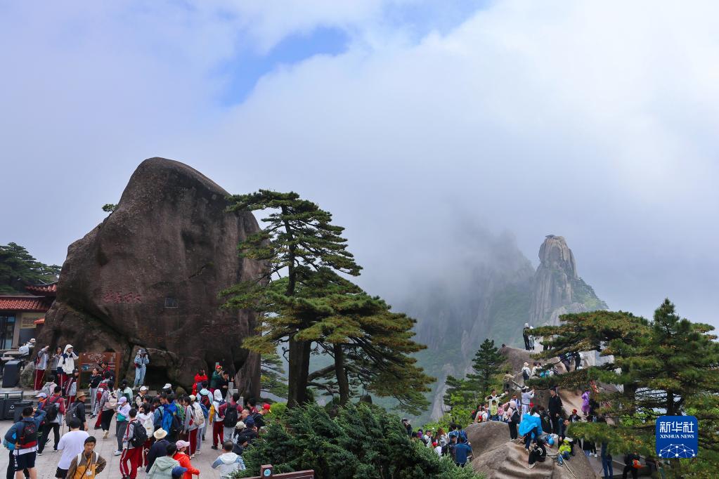 5月18日,游客在安徽黃山風景區(qū)玉屏景區(qū)游覽。