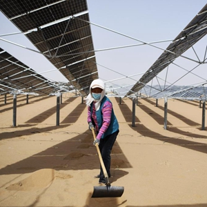 近年來,甘肅省武威市涼州區持續探索光伏治沙新模式,在騰格里沙漠重點實施立體光伏治沙產業化示范項目,建設光伏電站的同時,在光伏板下栽植耐旱沙生植物,將太陽能開發與騰格里沙漠治理有機結合,實現經濟效益和生態效益雙贏。