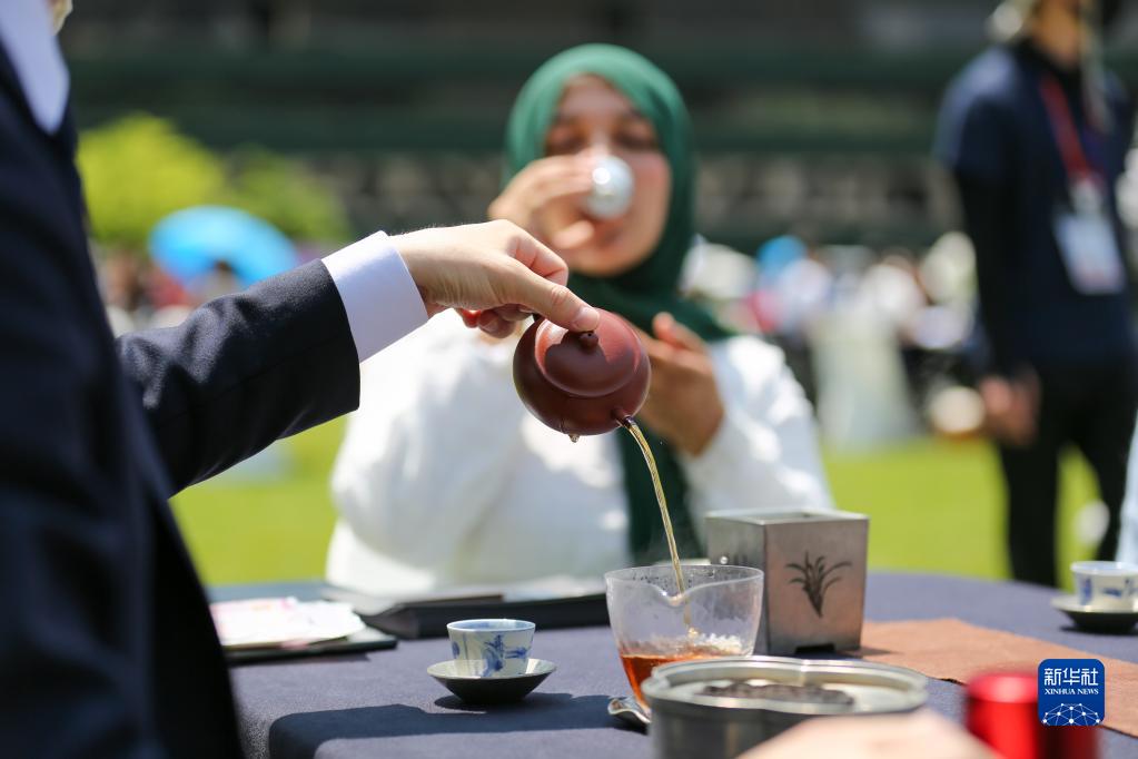 5月19日,游客在韓國(guó)首爾廣場(chǎng)品嘗中國(guó)茶。