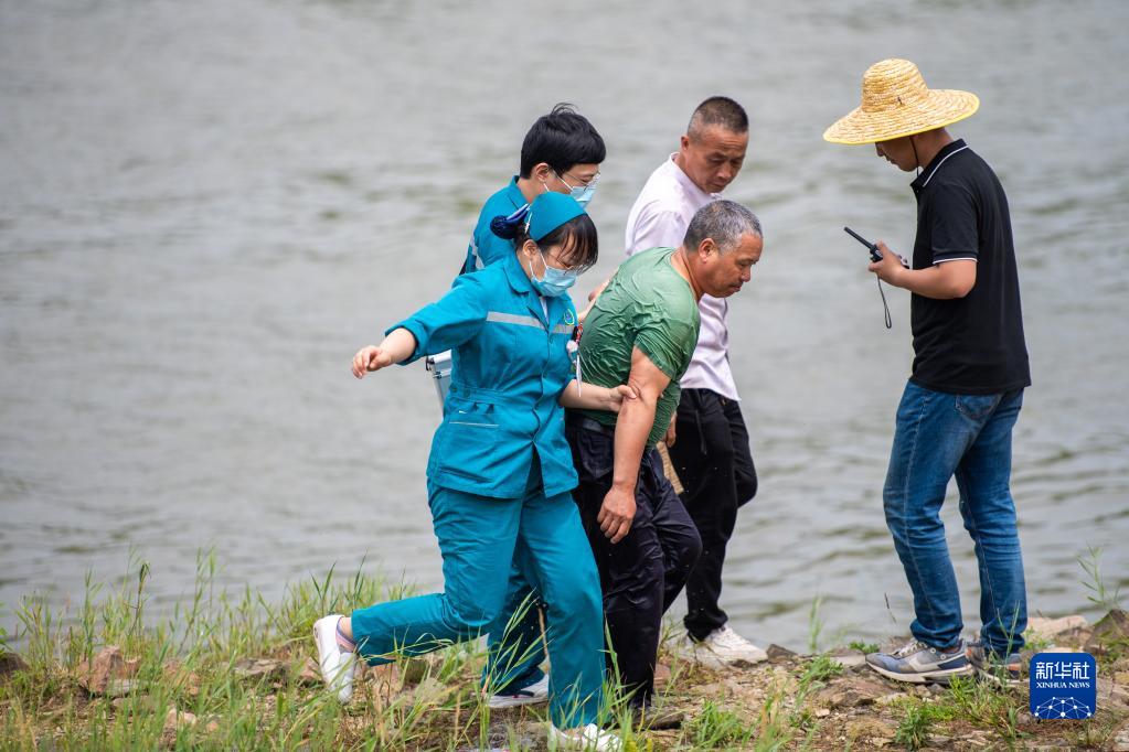 5月19日,在洞庭湖區(qū)防汛搶險(xiǎn)應(yīng)急救援演練中,醫(yī)務(wù)人員在演練救助落水群眾。