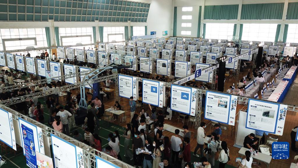 這是5月19日在中南林業(yè)科技大學涉外學院拍攝的招聘會現(xiàn)場(無人機照片)。