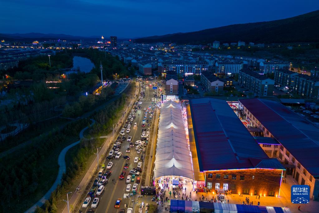 5月19日,游客在伊春夜市休閑游覽(無人機照片)。