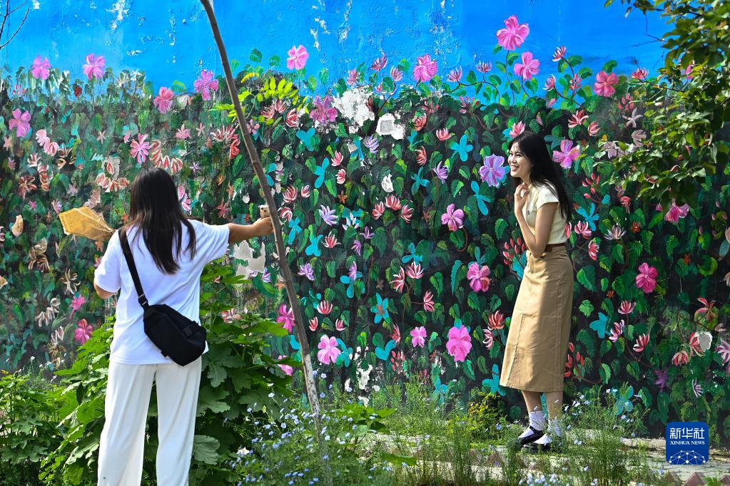 游客在伊寧市六星街打卡拍照(5月19日攝)。