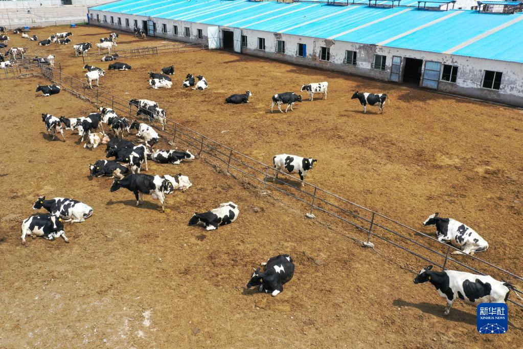 這是在新疆伊寧市巴彥岱鎮奶牛養殖場拍攝的飼養的奶牛(5月19日攝,無人機照片)。