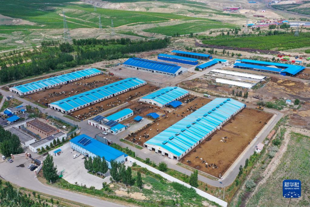 這是5月19日拍攝的新疆伊寧市巴彥岱鎮奶牛養殖場(無人機照片)。