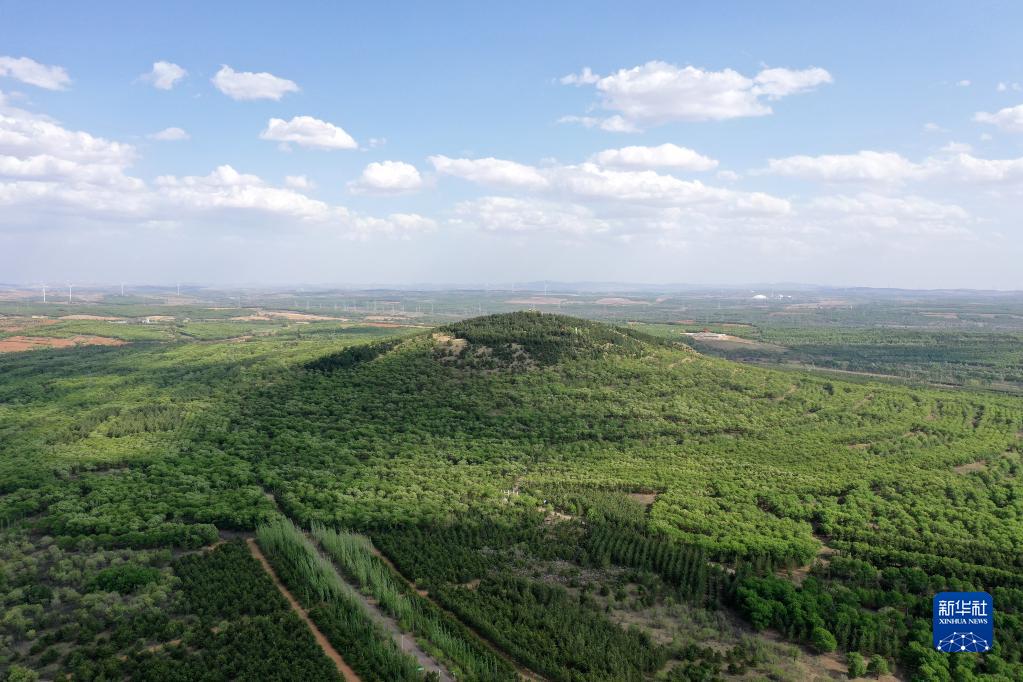 山西省右玉縣南山森林公園一角(5月18日攝,無人機照片)。