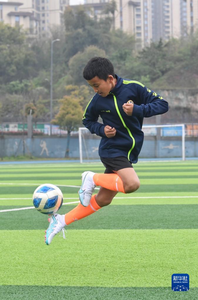 在瀘州天立春雨學(xué)校足球場(chǎng),來(lái)自涼山彝族自治州的楊坤在進(jìn)行訓(xùn)練(3月29日攝)。
