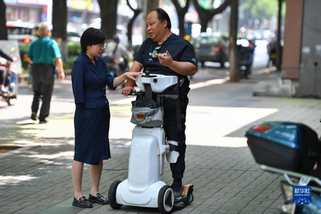 在湘潭市雨湖區廣場街道韶山路社區,扶婷(左)向一名殘友了解康復和輔助行動器械的使用情況(5月18日攝)。