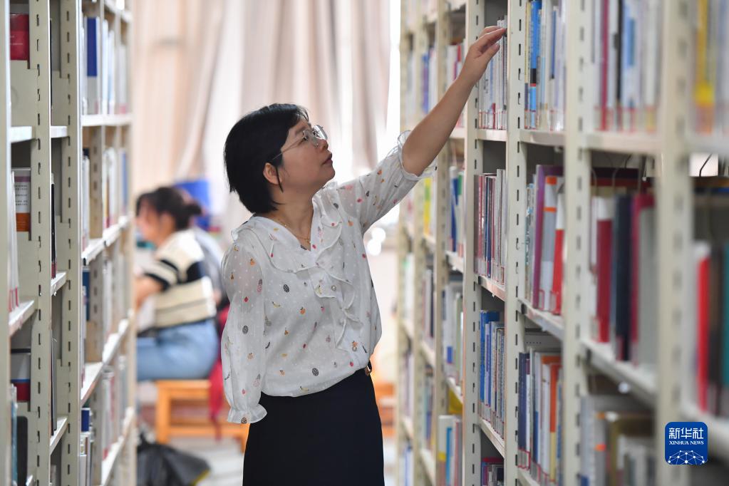 扶婷在湘潭大學(xué)圖書館借閱法律書籍(5月19日攝)。